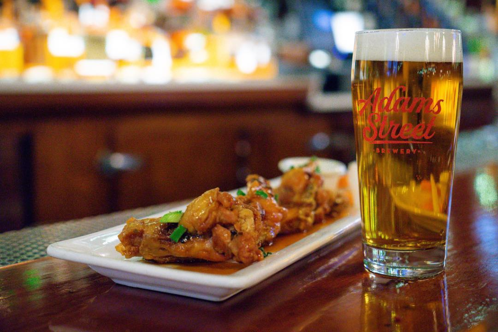 Adams Street Brewery may lead with its tap list, but the kitchen delivers food that pairs well with malty lagers and hop-forward ales.
