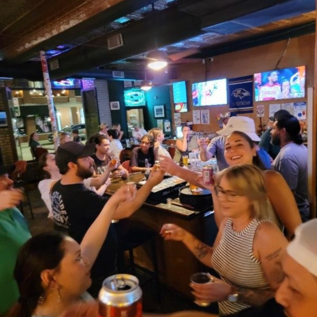 Look around, and you’ll spot a mix of 20- and 30-somethings, a few seasoned regulars, and the occasional game-day crowd shifting the room’s energy.